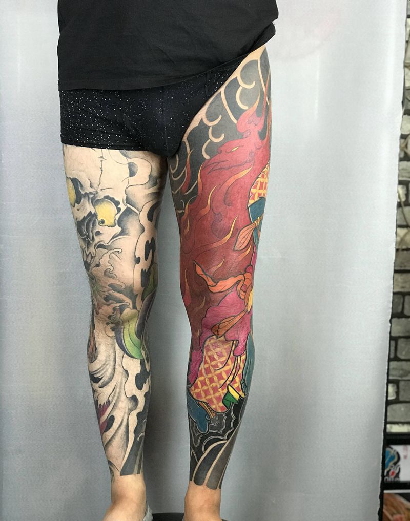 • T网红王老大花腿龙纹身图片_腿部新传统纹身图案