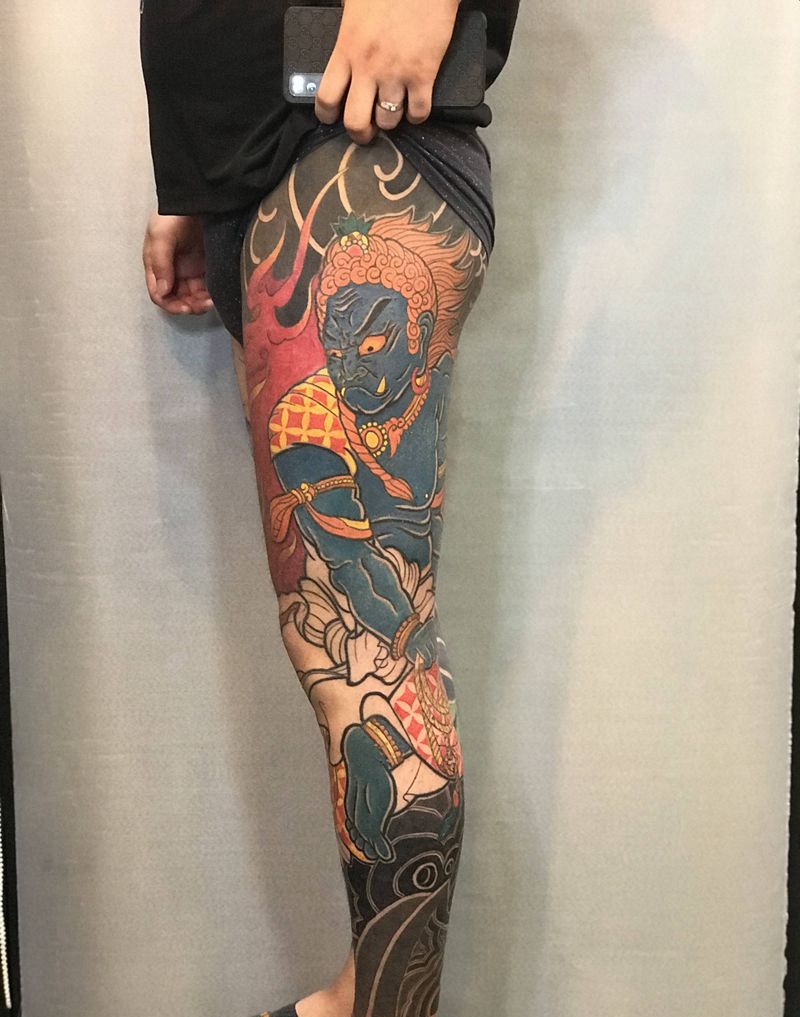 下次俊工明王纹身图片_腿部老传统纹身图案