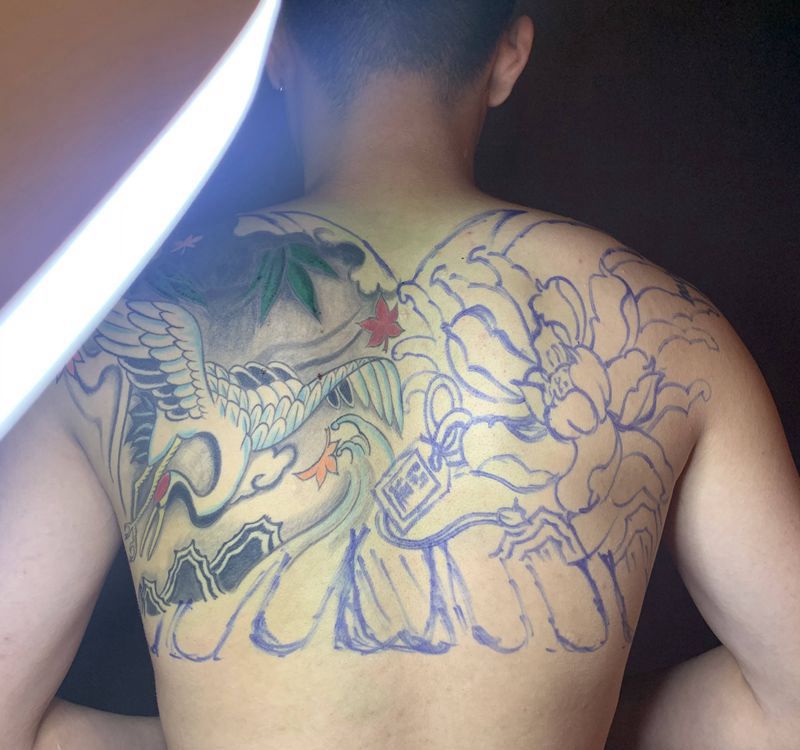 当前位置: 首页 >天津市纹身店-皆刺青纹身工作室纹身图案>原创手绘日式仙鹤荷花背纹身图片_背部新传统仙鹤荷花日式纹身图案