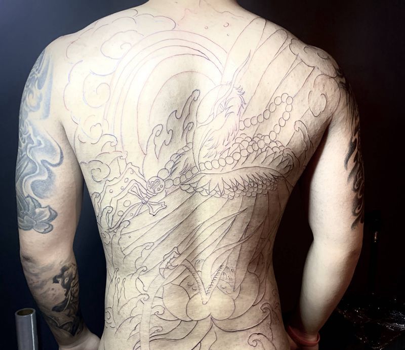 黑灰满背纹身图案