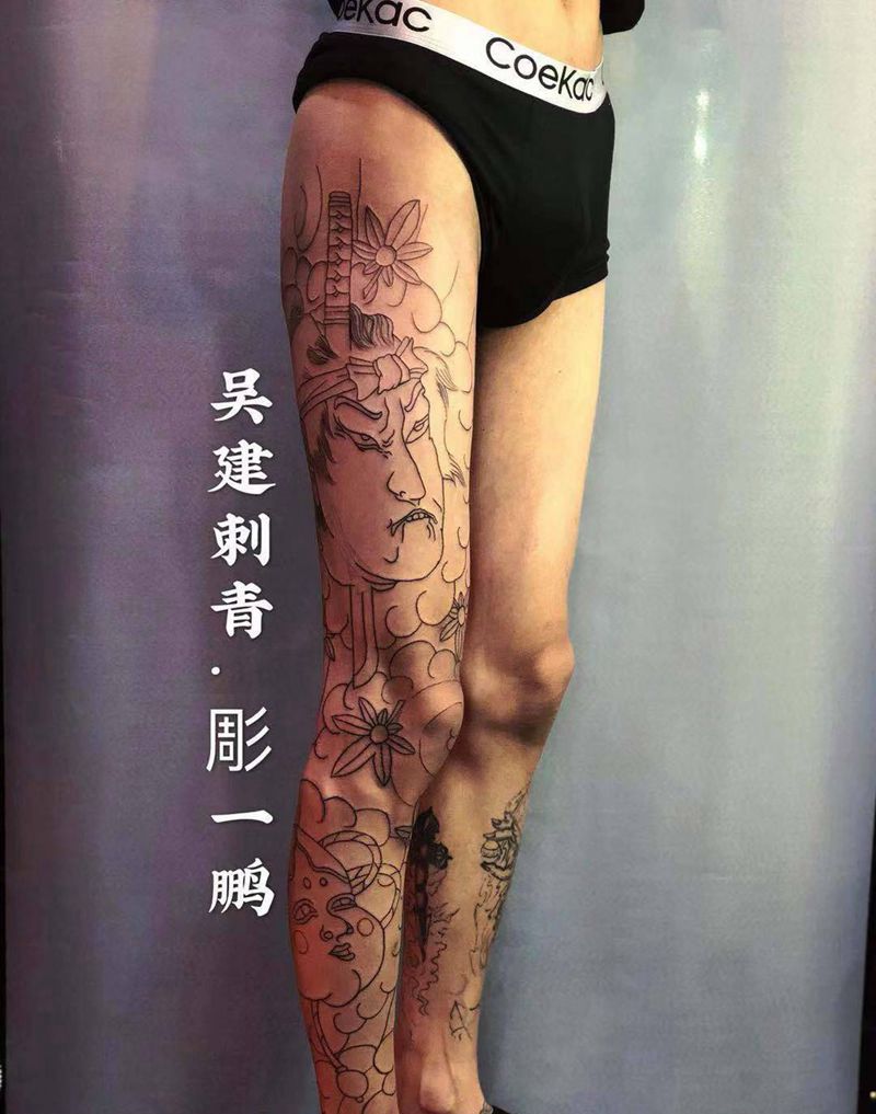 • T网红王老大花腿龙纹身图片_腿部新传统纹身图案