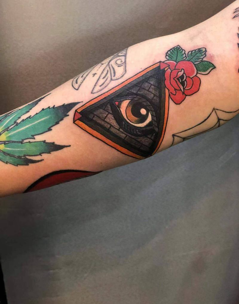 • 手背潮流时尚的玫瑰花眼睛纹身图案