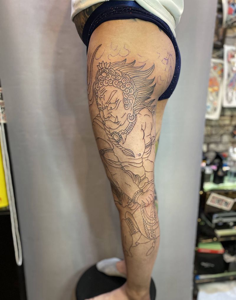 当前位置: 首页 >天津市纹身店-天津吴建刺青纹身图案>明王初步主题线条下次背景纹身图片_腿部老传统纹身图案