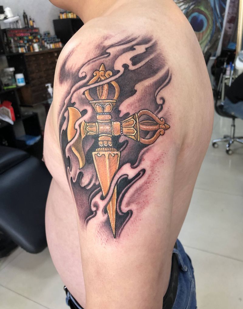 金刚降魔杵纹身图片_肩部新传统纹身图案