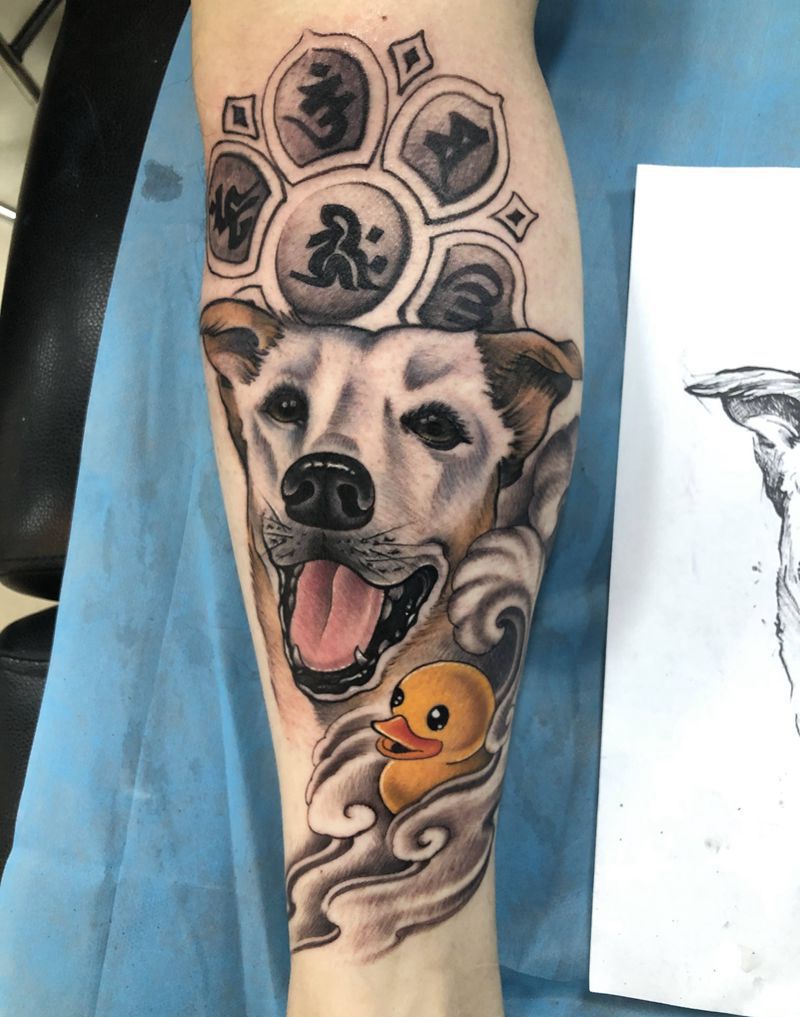 当前位置: 首页 >天津市纹身店-墨谷纹艺刺青纹身图案>狗纹身图片_腿部新传统纹身图案