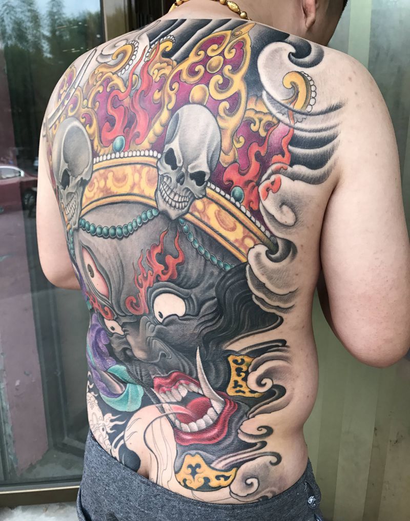 不动明王纹身图片_背部手臂老传统新传统纹身图案