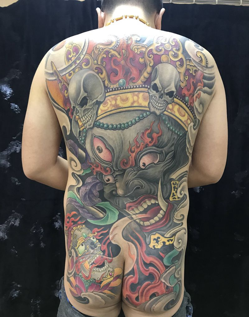 不动明王纹身图片_背部手臂老传统新传统纹身图案