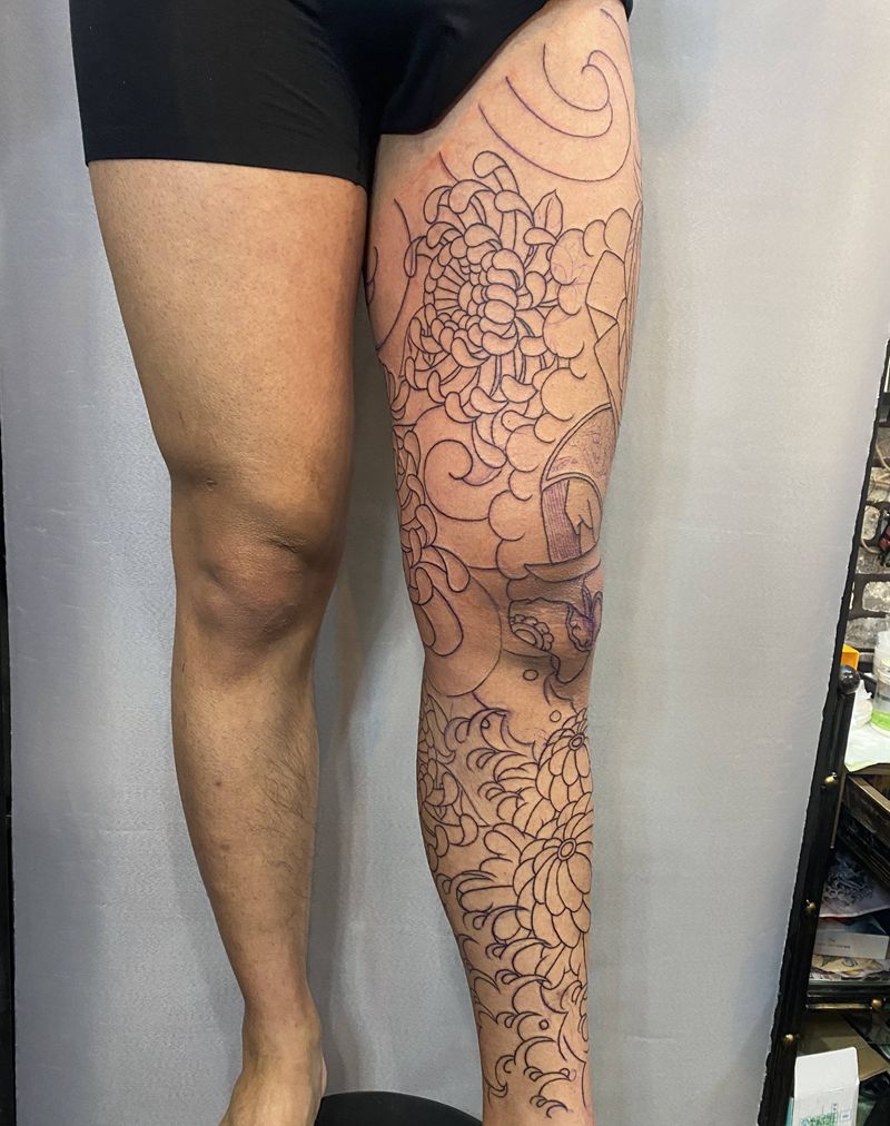 • T网红王老大花腿龙纹身图片_腿部新传统纹身图案