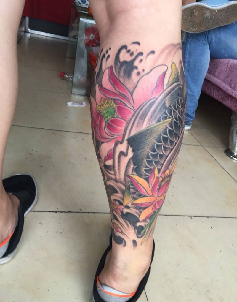 • T网红王老大花腿龙纹身图片_腿部新传统纹身图案