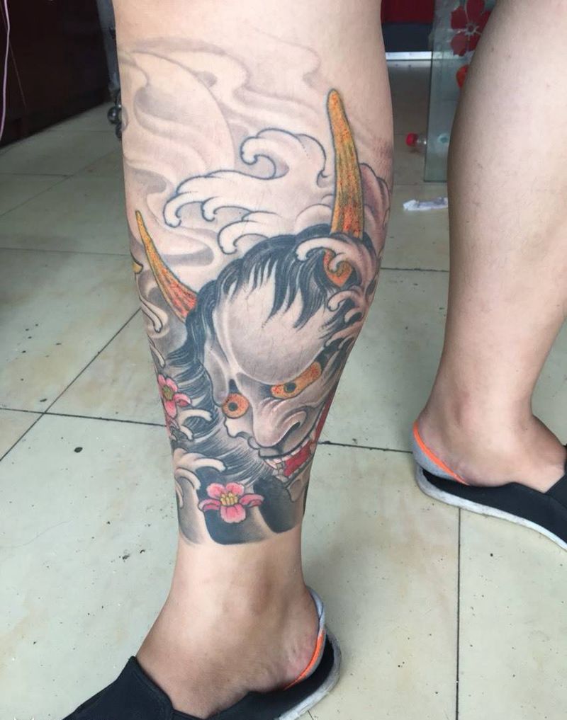 • T网红王老大花腿龙纹身图片_腿部新传统纹身图案