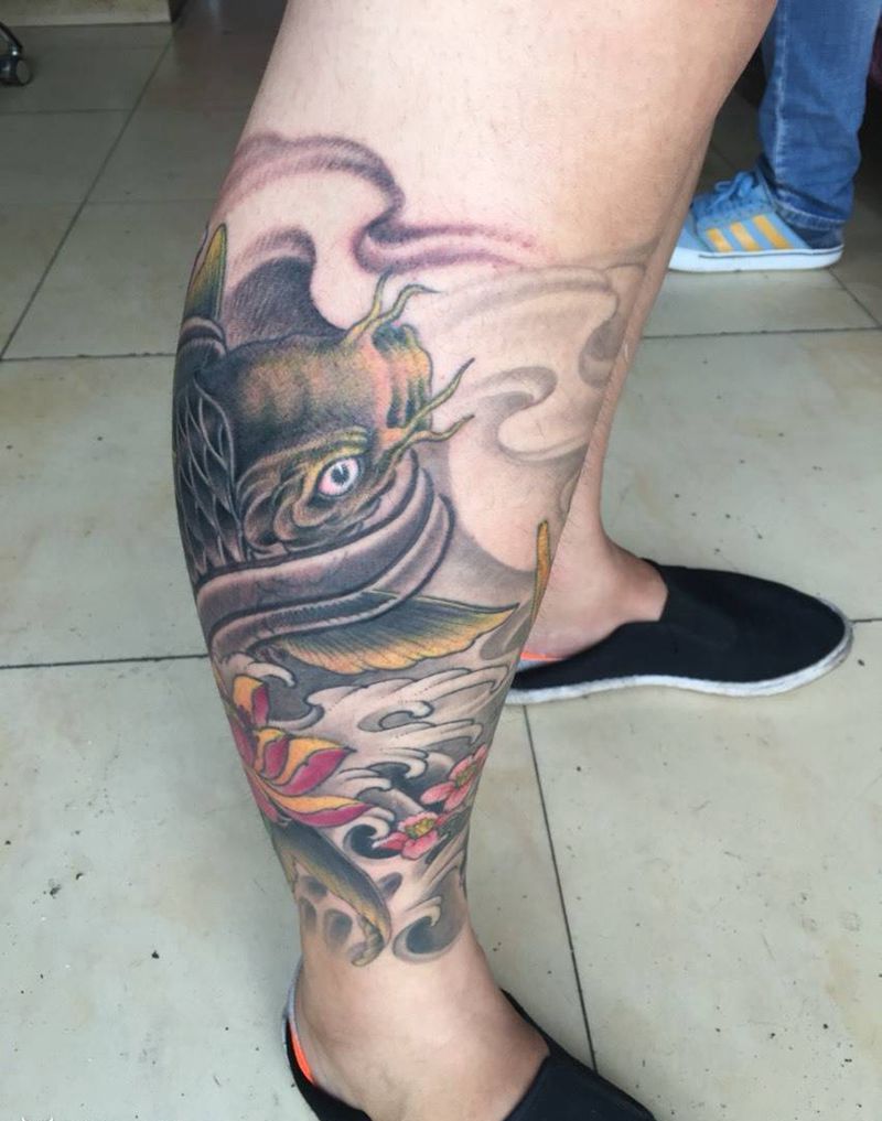• T网红王老大花腿龙纹身图片_腿部新传统纹身图案