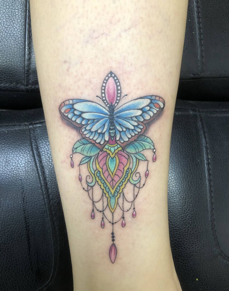 蝴蝶纹身图片_手臂腿部新传统水彩纹身图案
