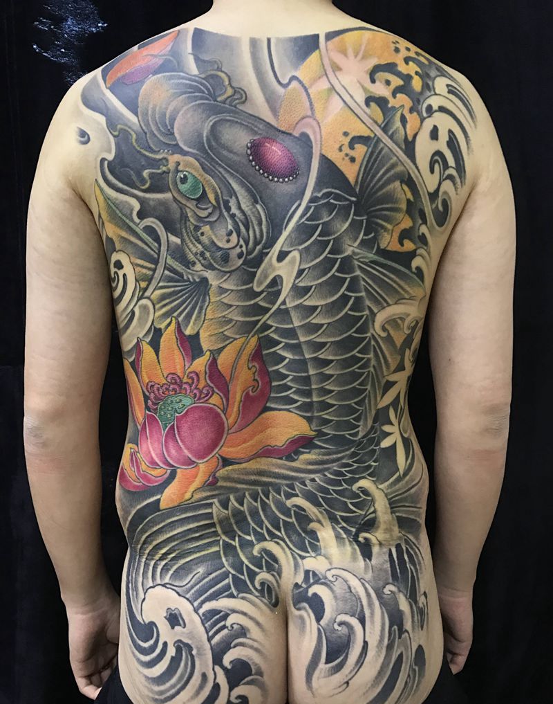 当前位置: 首页 >天津市纹身店-墨谷纹艺刺青纹身图案>满背锦鲤纹身图片_背部新传统纹身图案