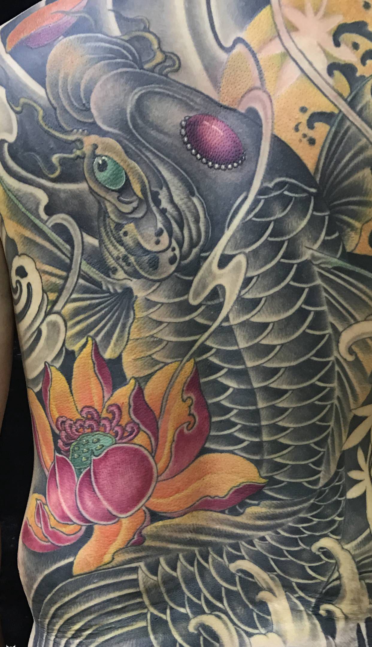 当前位置: 首页 >天津市纹身店-墨谷纹艺刺青纹身图案>满背锦鲤纹身图片_背部新传统纹身图案