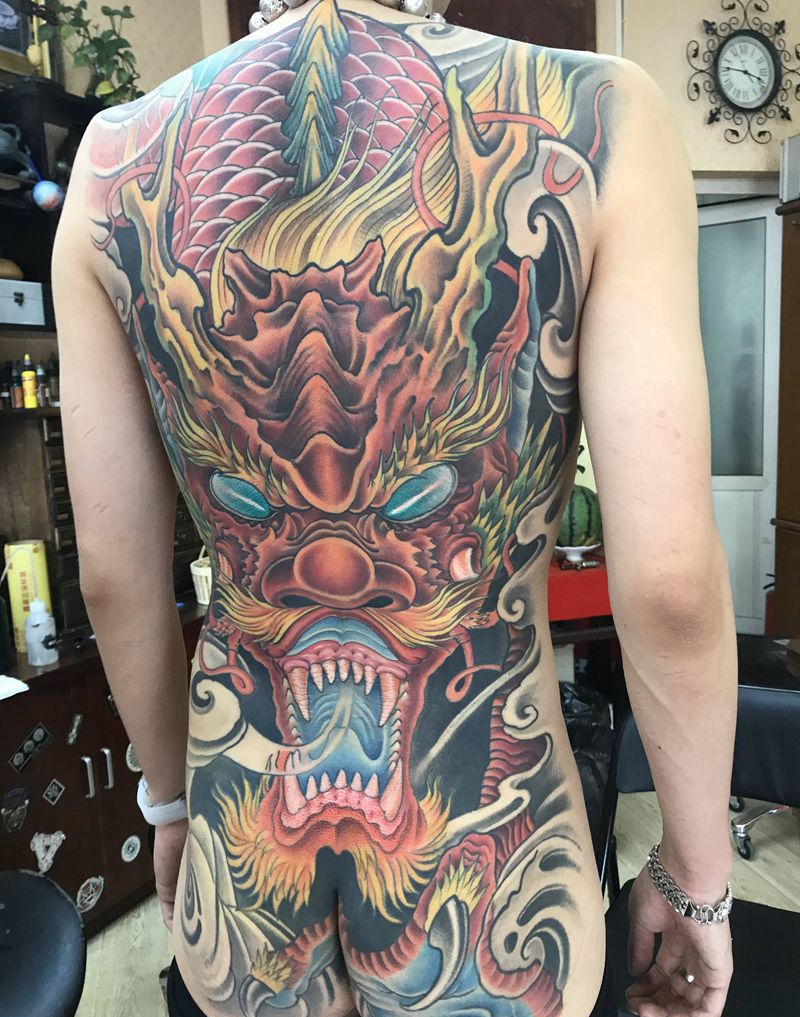 霸气红龙纹身图片_胸部背部新传统老传统纹身图案