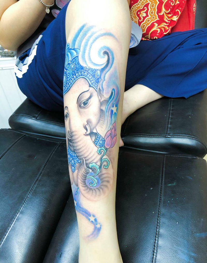 当前位置: 首页 >天津市纹身店-墨谷纹艺刺青纹身图案>可爱小象神纹身图片_手臂腿部新传统水彩纹身图案