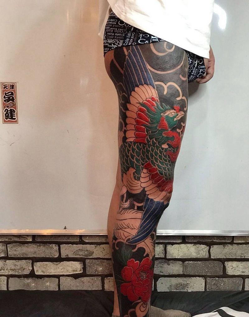 当前位置: 首页 >天津市纹身店-天津吴建刺青纹身图案>花腿凤纹身图片_腿部纹身图案