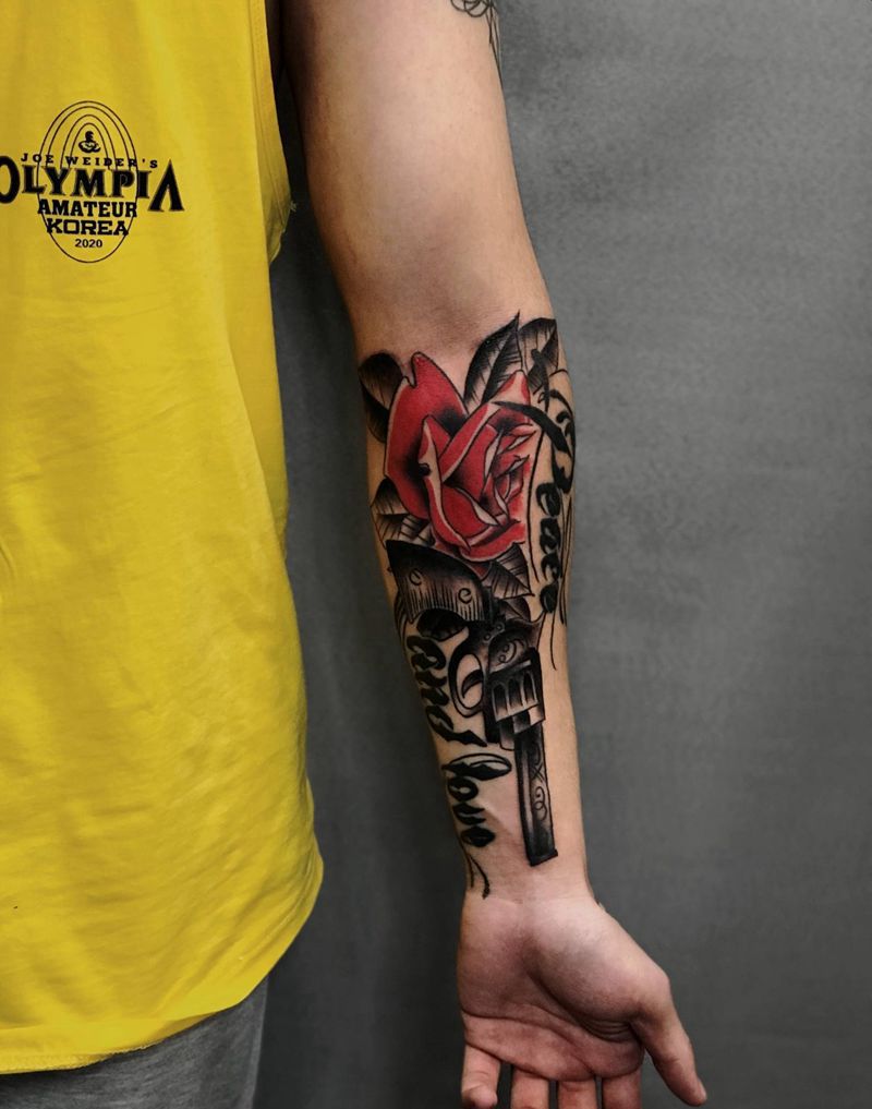 当前位置: 首页 >天津市纹身店-天津吴建刺青纹身图案>枪与玫瑰纹身图片_手臂纹身图案