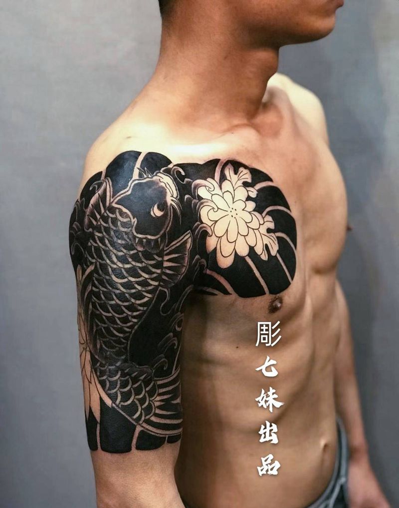 遮盖半甲鱼纹身图片_手臂老传统纹身图案