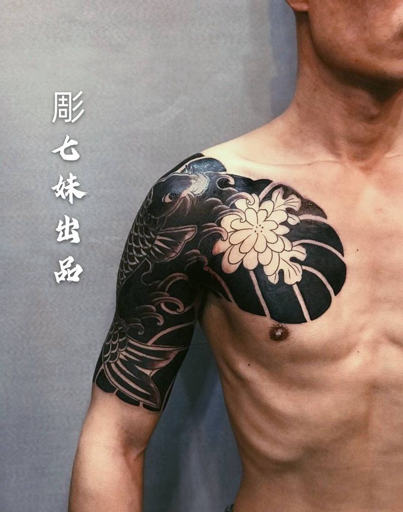 遮盖半甲鱼纹身图片_手臂老传统纹身图案