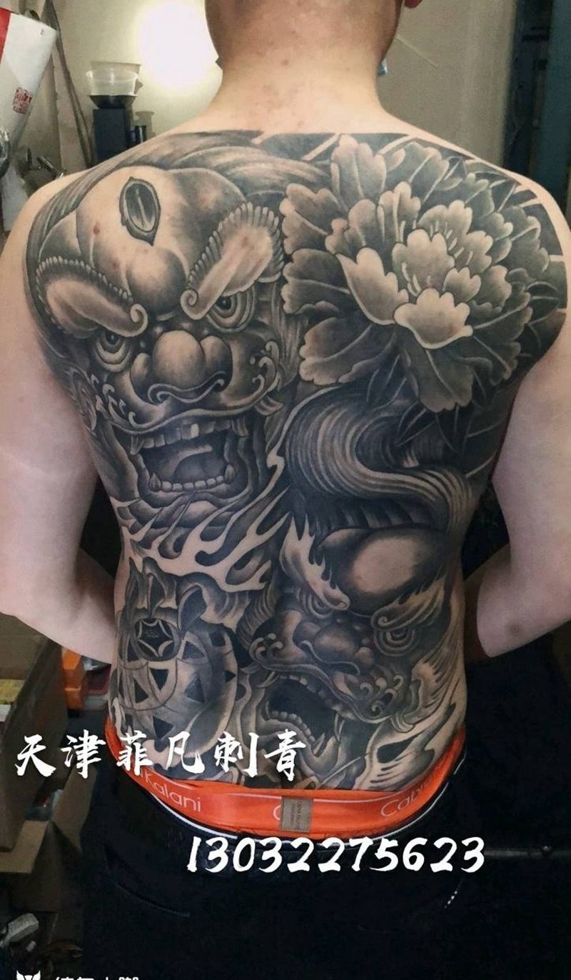 黑灰满背纹身图案