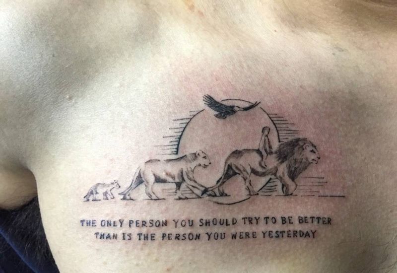 当前位置: 首页 >天津市纹身店-解忧文身店纹身图案>狮子一家纹身图片_清新动物胸部纹身图案