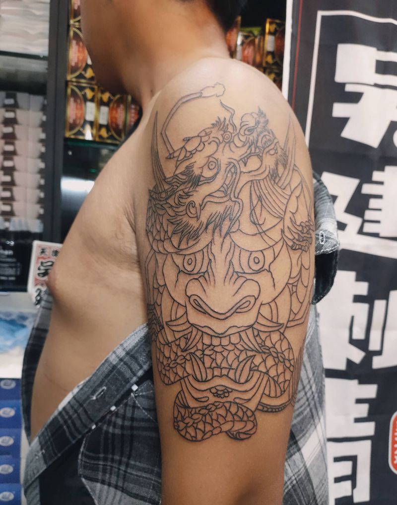 • 纹身吧推荐的披肩图腾半胛纹身图案作品展示