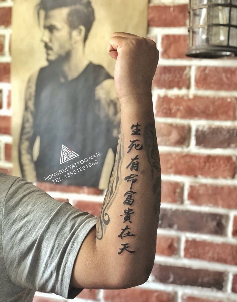 生死有命富贵在天纹身图片_手臂水墨纹身图案