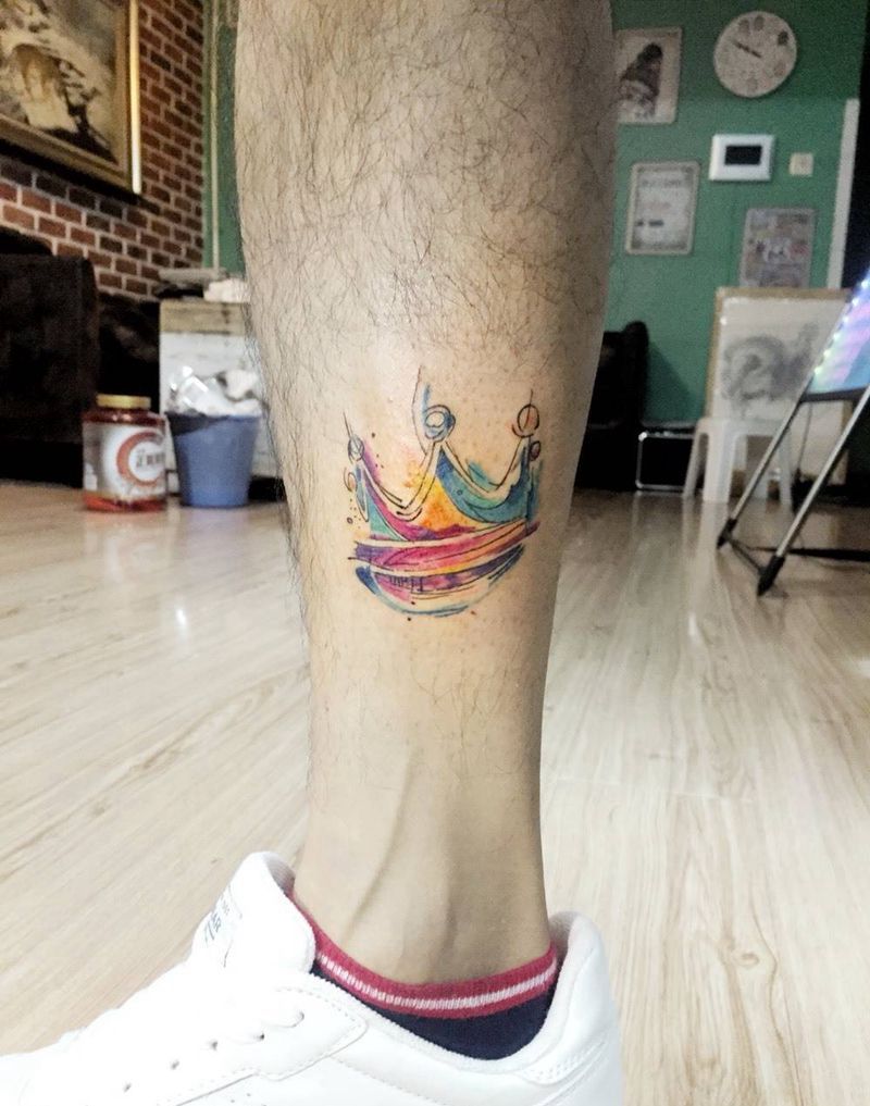 当前位置: 首页 >天津市纹身店-解忧文身店纹身图案>彩色皇冠纹身图片_腿部清新纹身图案