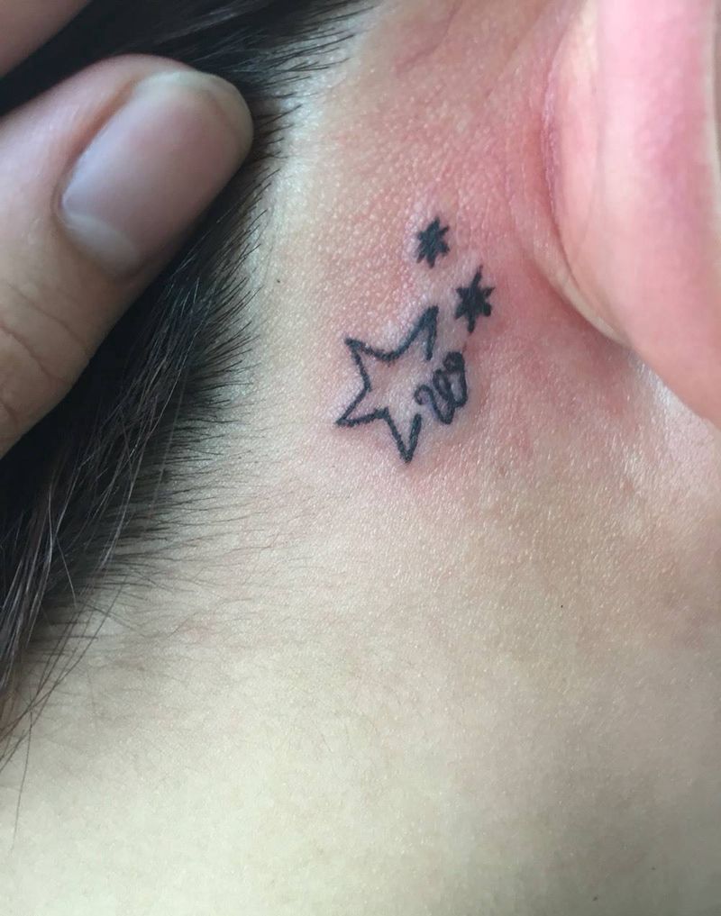 当前位置: 首页 >天津市纹身店-解忧文身店纹身图案>耳后 星星纹身图片_颈部清新几何字符成品纹身图案