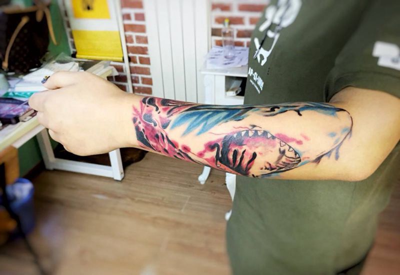 当前位置: 首页 >天津市纹身店-解忧文身店纹身图案>Shark纹身图片_欧美动物手臂纹身图案