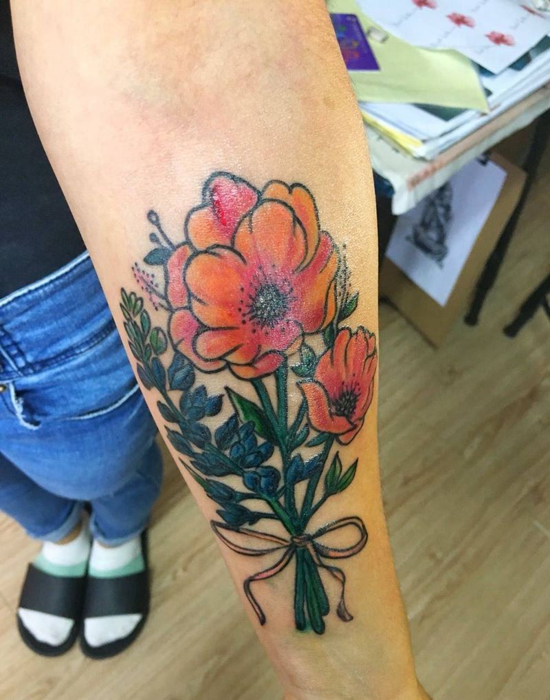 罂粟花纹身图片_手臂欧美植物纹身图案
