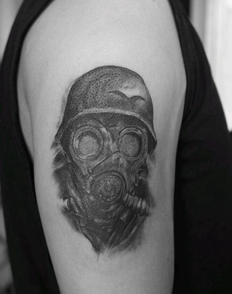 面具遮盖纹身图片_手臂欧美写实纹身图案