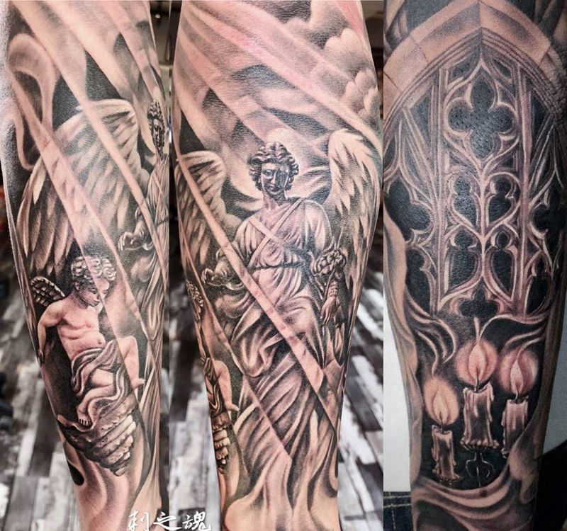 当前位置: 首页 >天津市纹身店-刺之魂艺术纹身纹身图案>天使纹身图片_手臂欧美写实水墨纹身图案