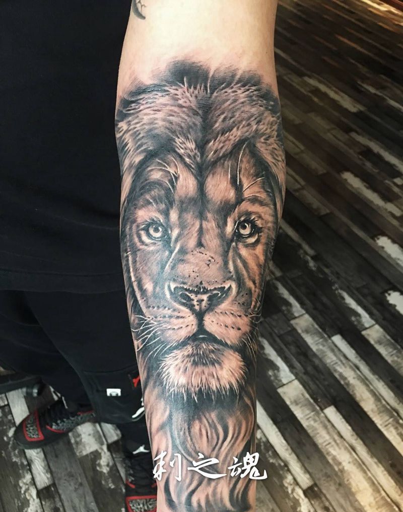 当前位置: 首页 >天津市纹身店-刺之魂艺术纹身纹身图案>狮子王纹身图片_成品手臂欧美写实动物原创纹身图案