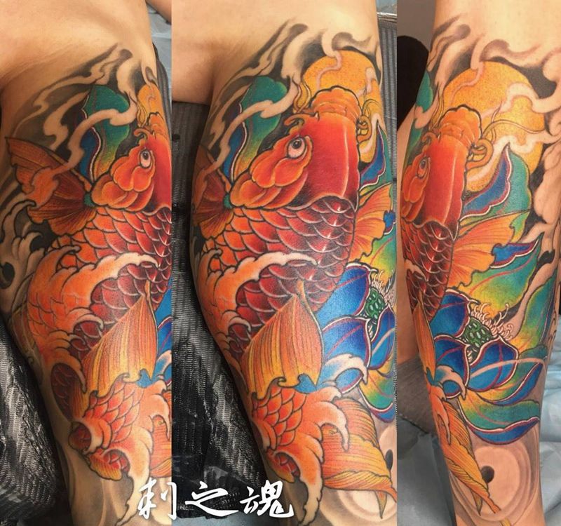 当前位置: 首页 >天津市纹身店-刺之魂艺术纹身纹身图案>鲤鱼纹身图片_成品传统原创腿部纹身图案