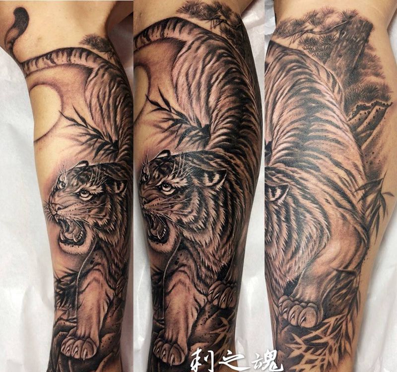 当前位置: 首页 >天津市纹身店-刺之魂艺术纹身纹身图案>王者风范纹身图片_成品腿部写实动物原创纹身图案