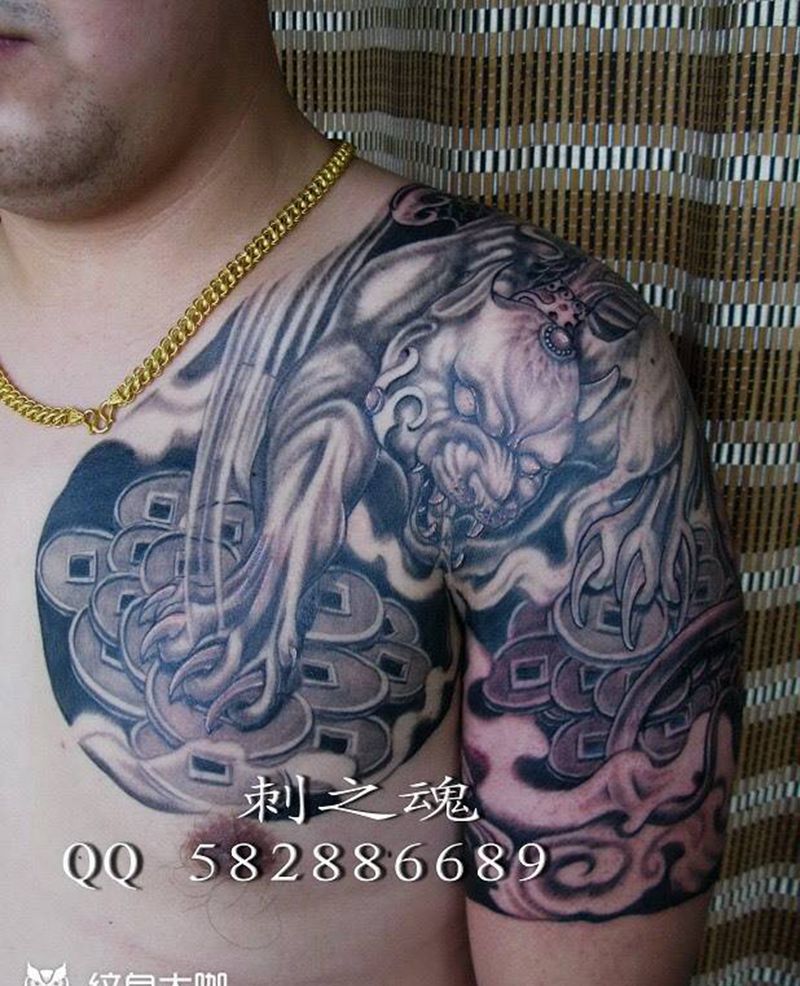 貔貅半胛纹身图片_成品胸部传统动物原创纹身图案