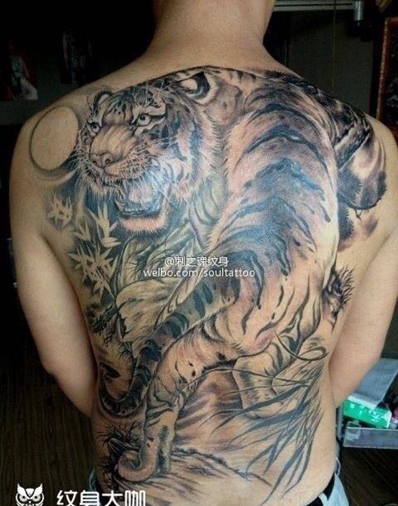 当前位置: 首页 >天津市纹身店-刺之魂艺术纹身纹身图案>老虎纹身图片_成品背部写实原创动物纹身图案