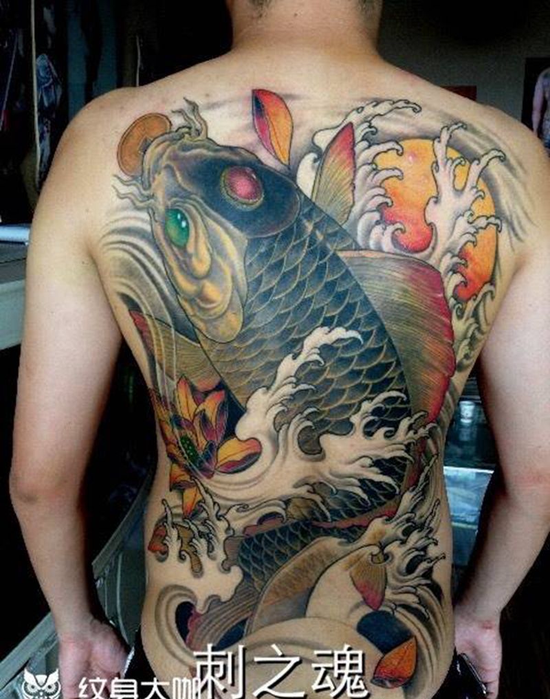 招财鲤鱼纹身图片_成品背部传统习俗动物原创纹身图案
