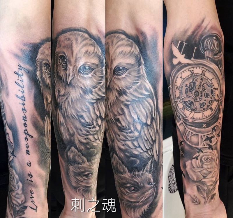 当前位置: 首页 >天津市纹身店-刺之魂艺术纹身纹身图案>猫头鹰纹身图片_欧美写实动物原创成品手臂纹身图案