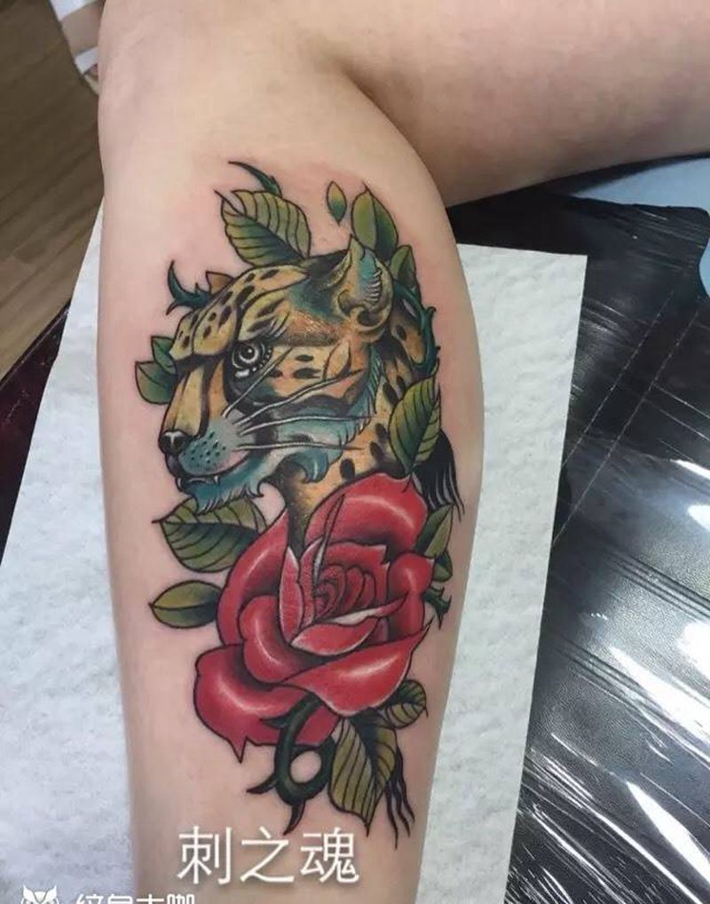 • T网红王老大花腿龙纹身图片_腿部新传统纹身图案