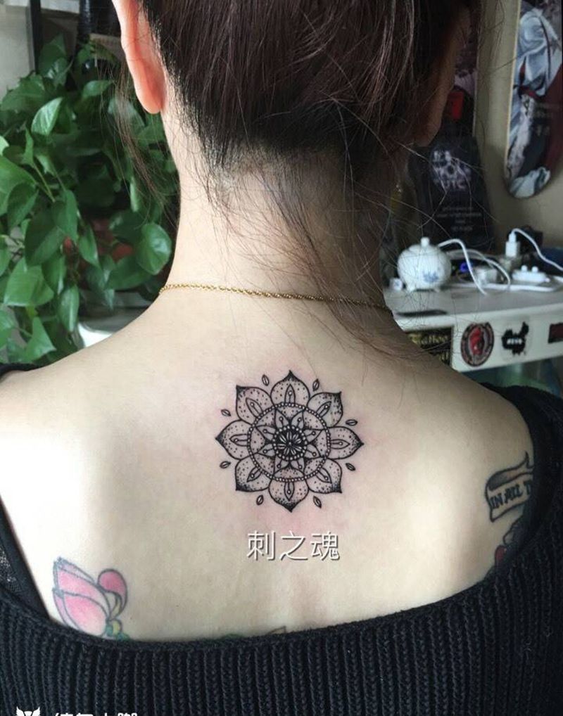当前位置: 首页 >天津市纹身店-刺之魂艺术纹身纹身图案>曼陀罗纹身图片_成品颈部欧美清新图腾原创纹身图案