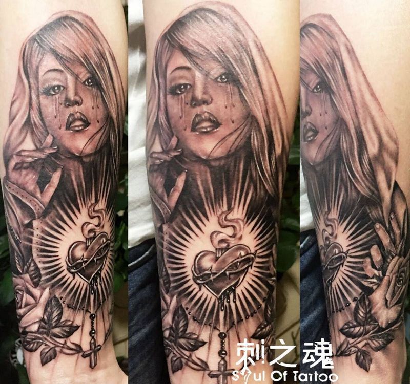 圣心纹身图片_成品手臂欧美写实人物原创宗教纹身图案