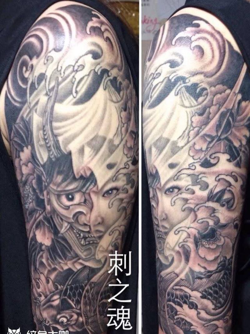 • 黑灰满背纹身图案
