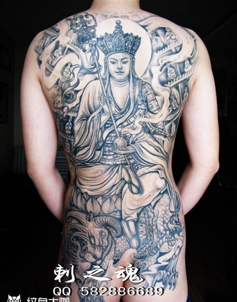 地藏菩萨纹身图片_背部传统人物原创纹身图案