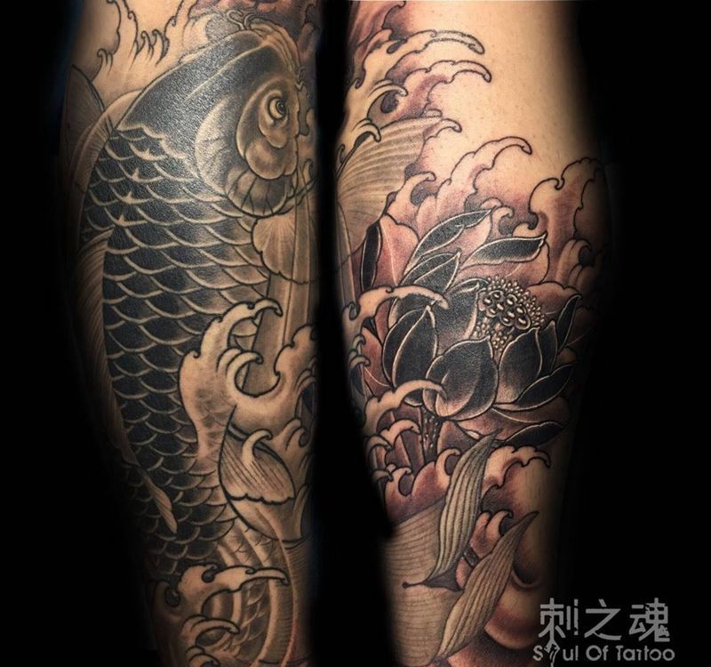 当前位置: 首页 >天津市纹身店-刺之魂艺术纹身纹身图案>鲤鱼纹身图片_成品腿部传统动物原创纹身图案