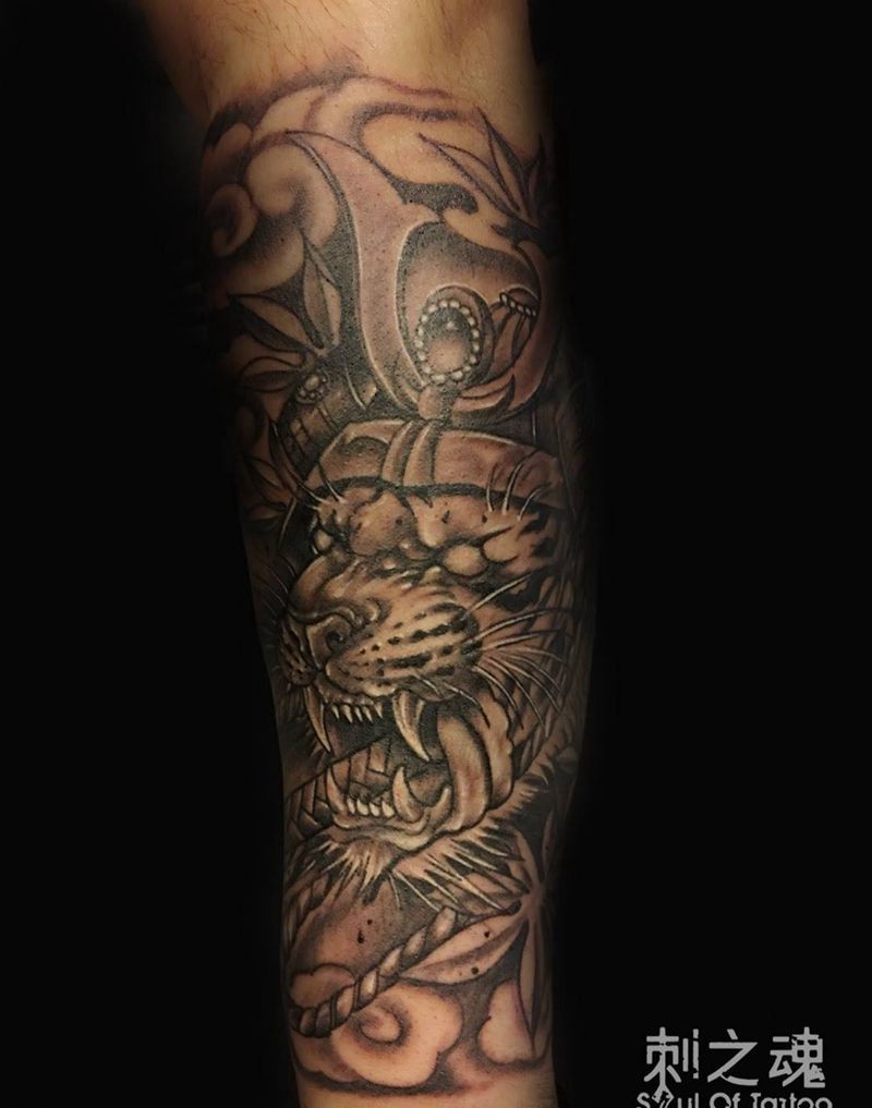 当前位置: 首页 >天津市纹身店-刺之魂艺术纹身纹身图案>老虎武士纹身图片_