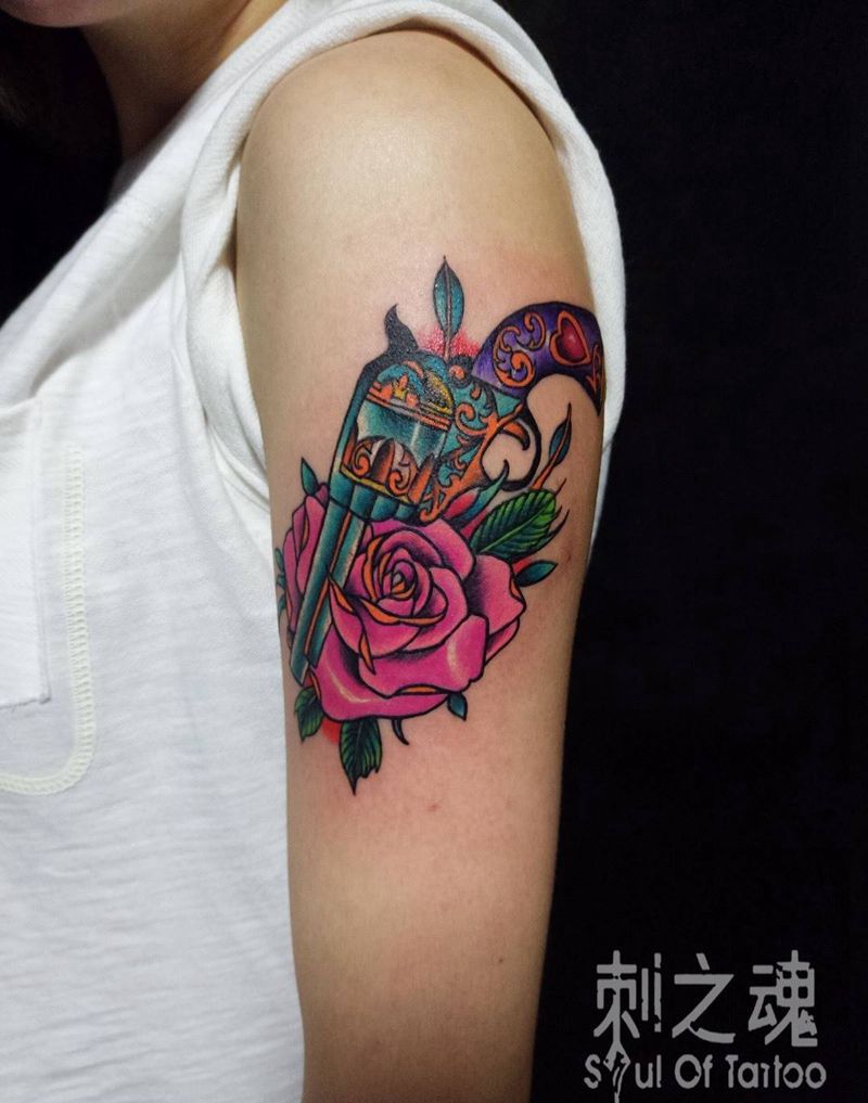 当前位置: 首页 >天津市纹身店-刺之魂艺术纹身纹身图案>枪花纹身图片_