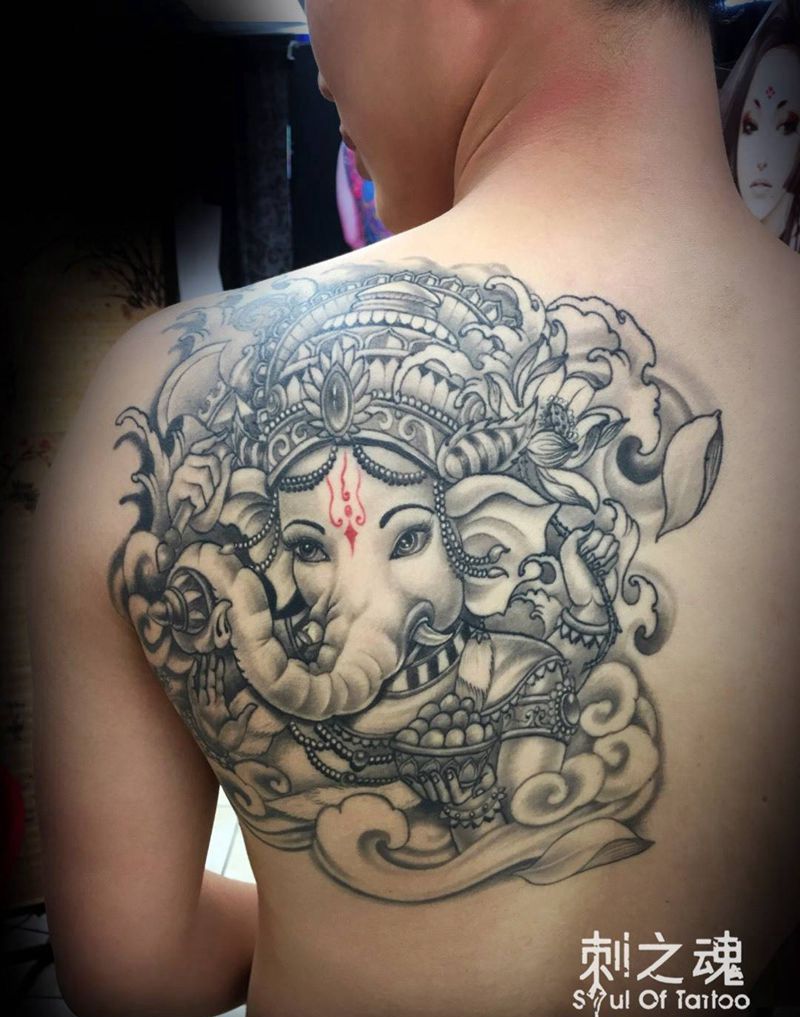 当前位置: 首页 >天津市纹身店-刺之魂艺术纹身纹身图案>象神纹身图片_成品肩部传统人物原创鬼神纹身图案